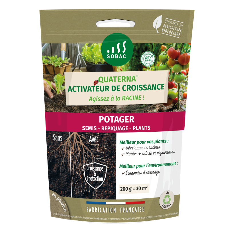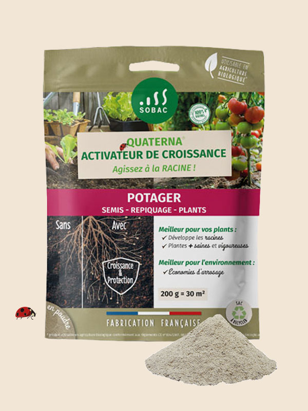Les produits de la gamme QUATERNA sont un support de culture qui enrobe les racines afin d’introduire les micro-organismes au plus près de celles-ci pour créer un environnement optimal dans la rhizosphère pour un développement optimisé des plants. Il sont utilisables en Agriculture Biologique*. Ils s’utilisent en complément du BACTÉRIOSOL®.